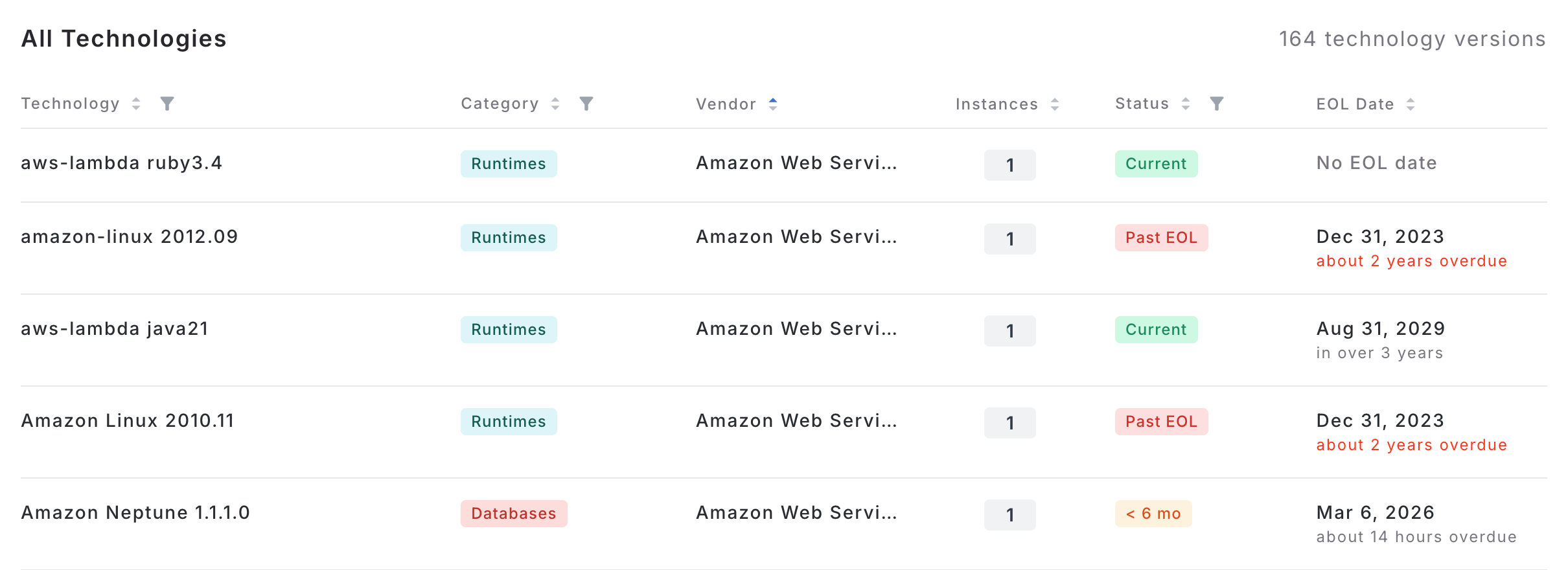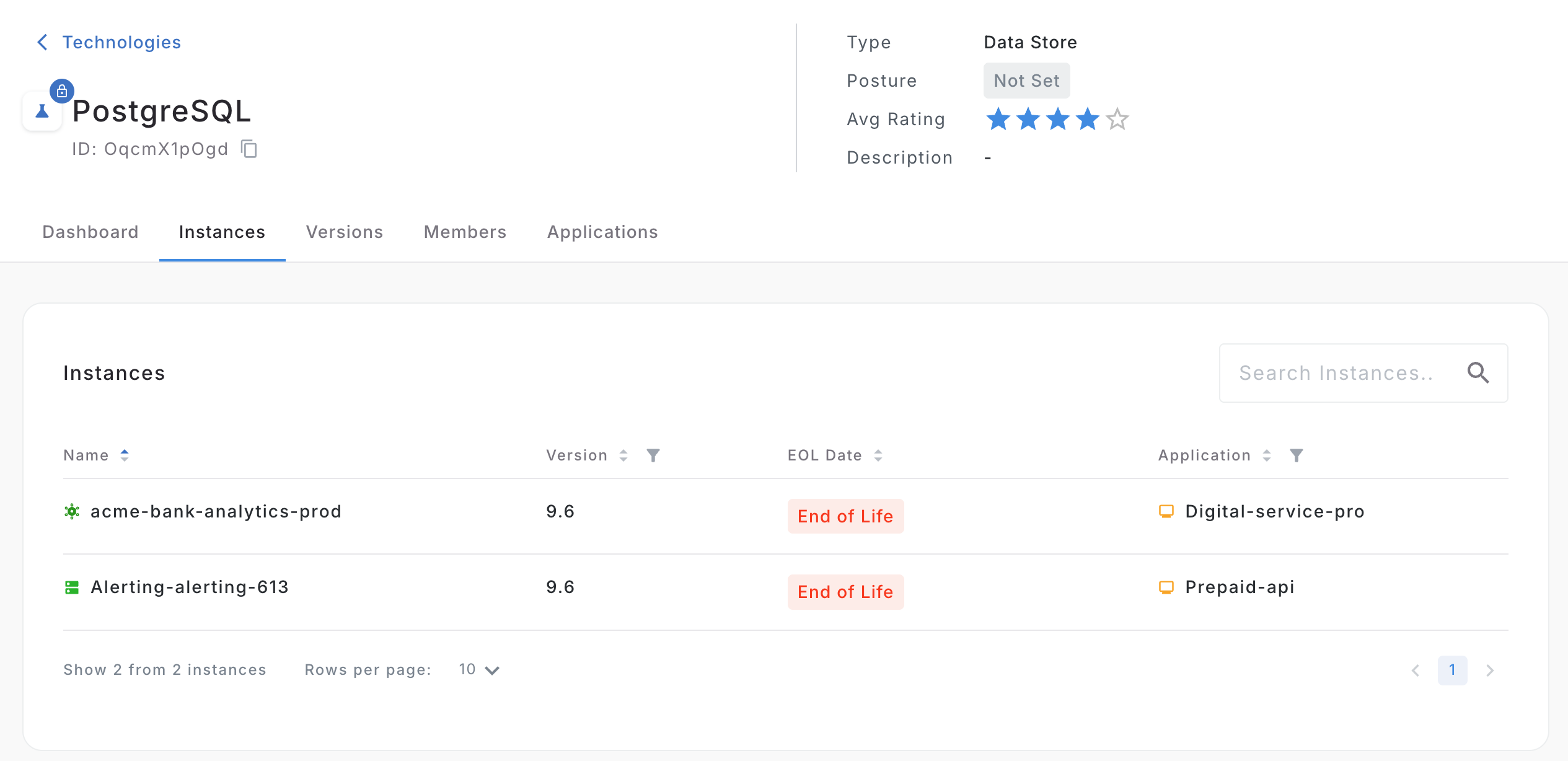 This guide explains the terminology and relationship mappings related to technologies, versions, instances, and End of Life (EOL) data.