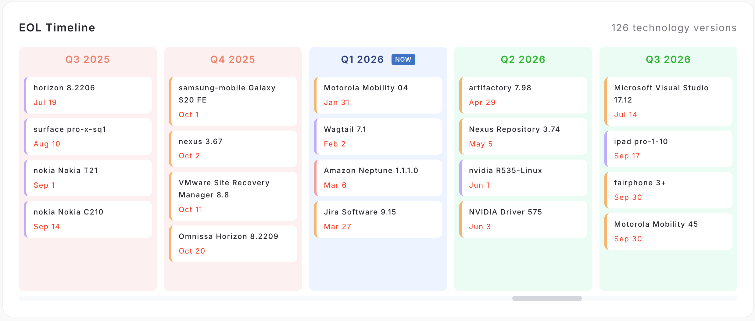 - EOL status = evaluated at version level, then reused everywhere that version appears